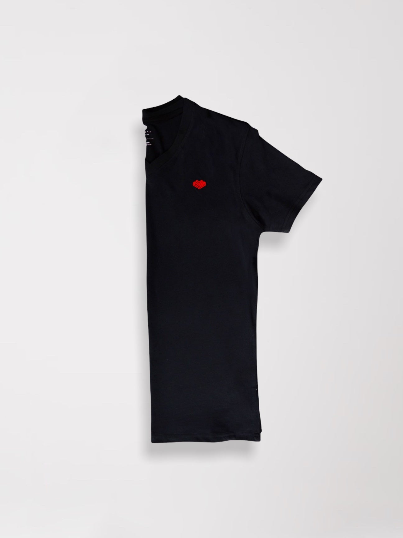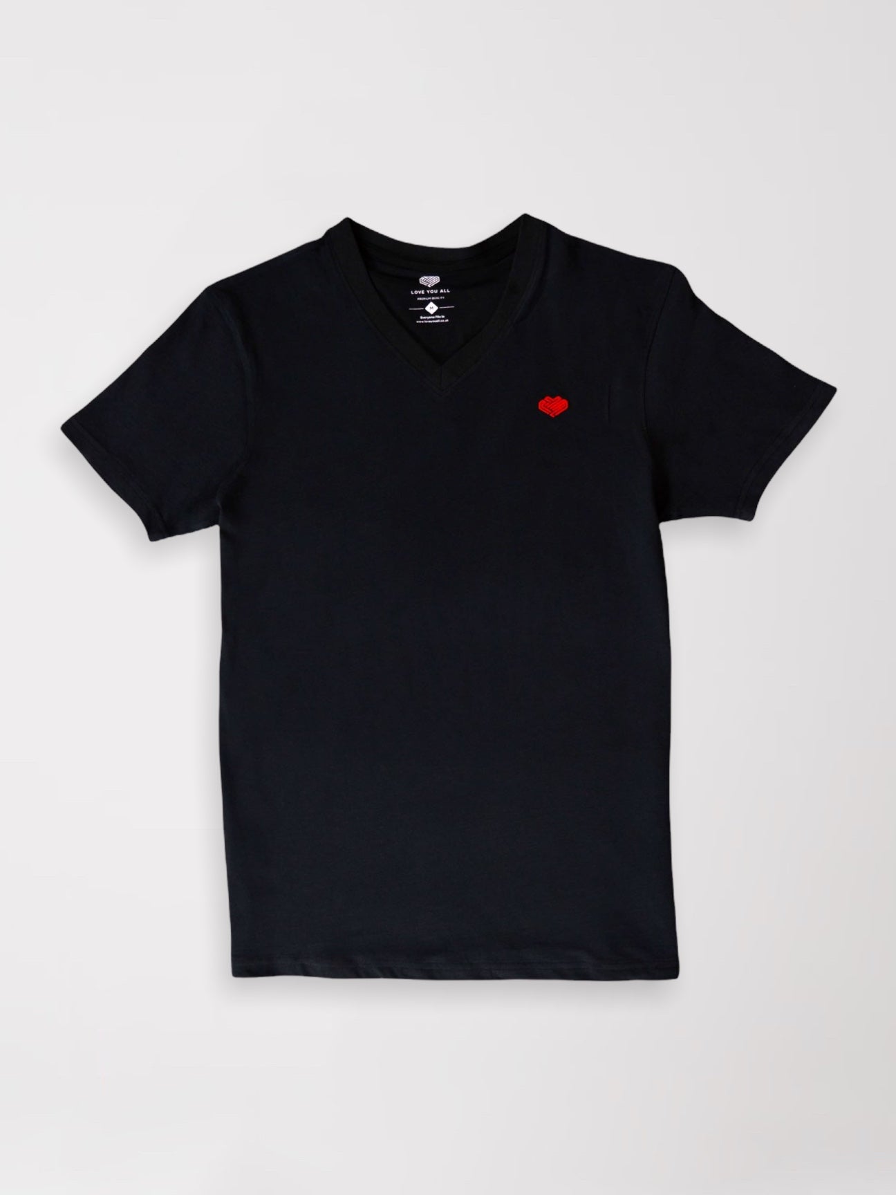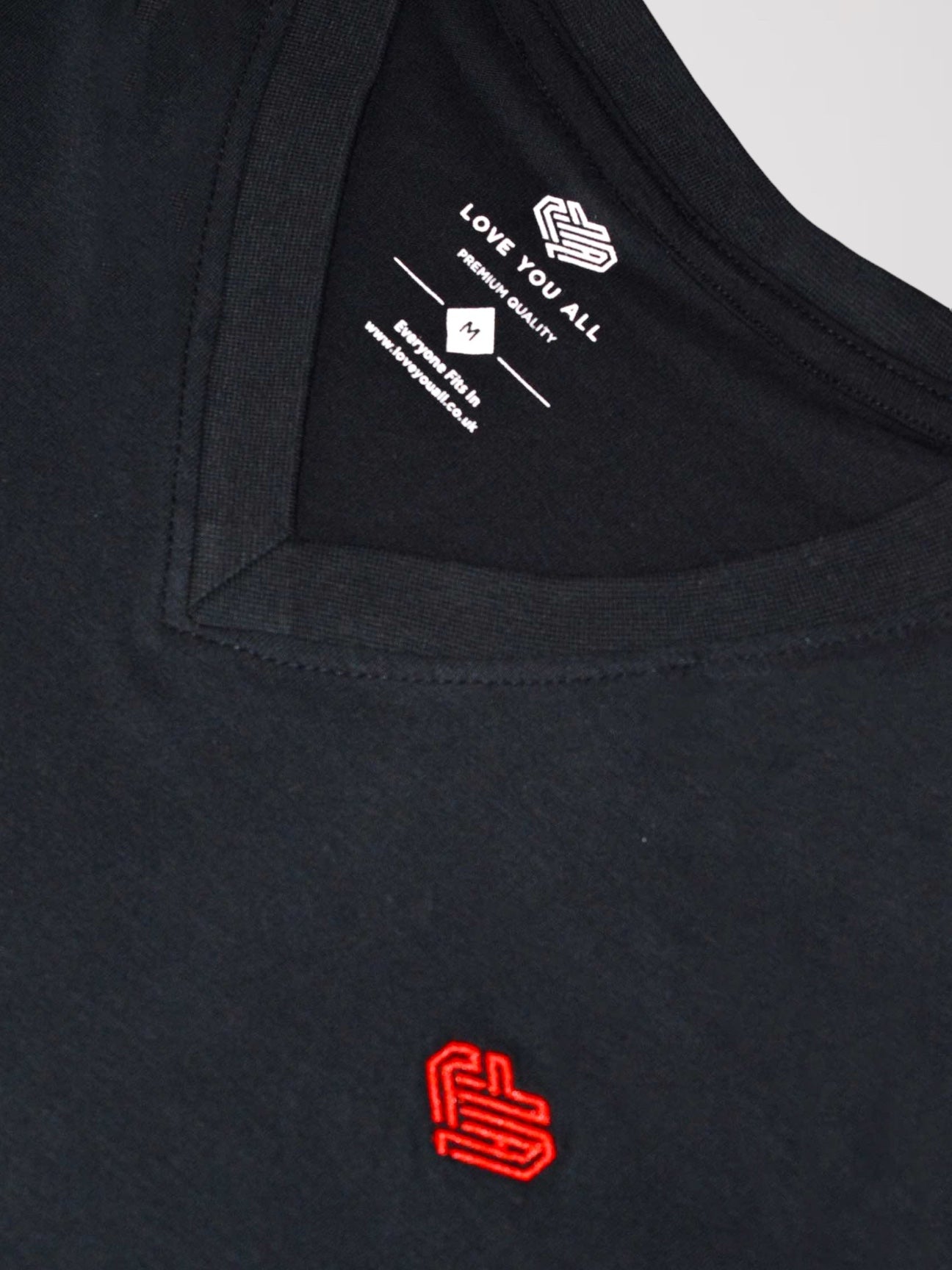 Refresh your wardrobe with the Black V-Neck T-Shirt with Red LOVE Logo. Made from 100% cotton, this lightweight tee offers a soft, ultra-smooth peach finish for lasting comfort. The embroidered red LOVE logo adds a bold pop of color to its clean, minimal design. Versatile enough to wear solo or layered, it’s a must-have everyday essential.