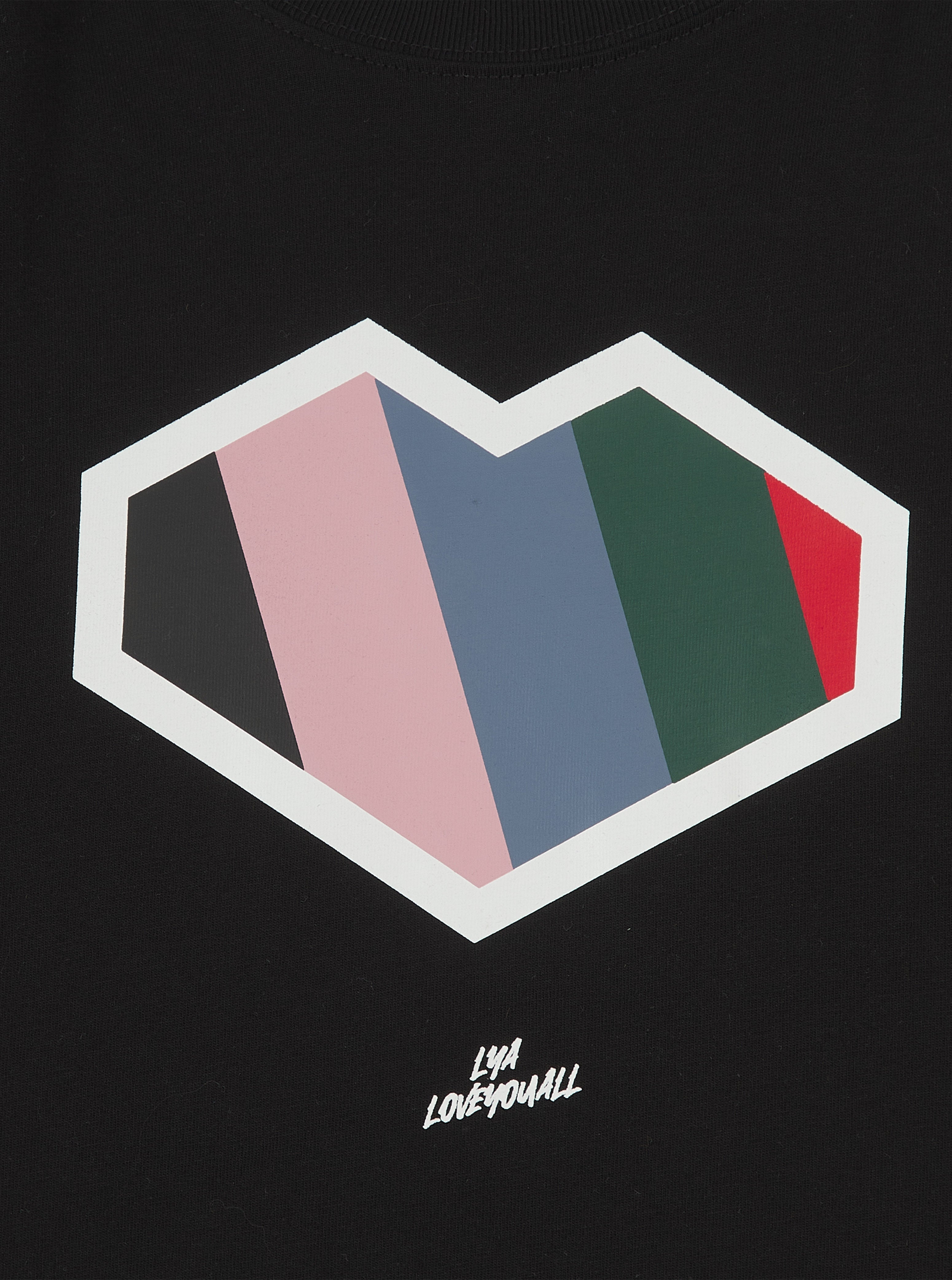 Cut in a classic regular fit with a ribbed crew neck, straight hemline, and short sleeves, it’s easy to wear and perfect for any casual occasion. The standout colour block LOVE icon with LYA signature in rubber print adds a bold, modern edge to your look.