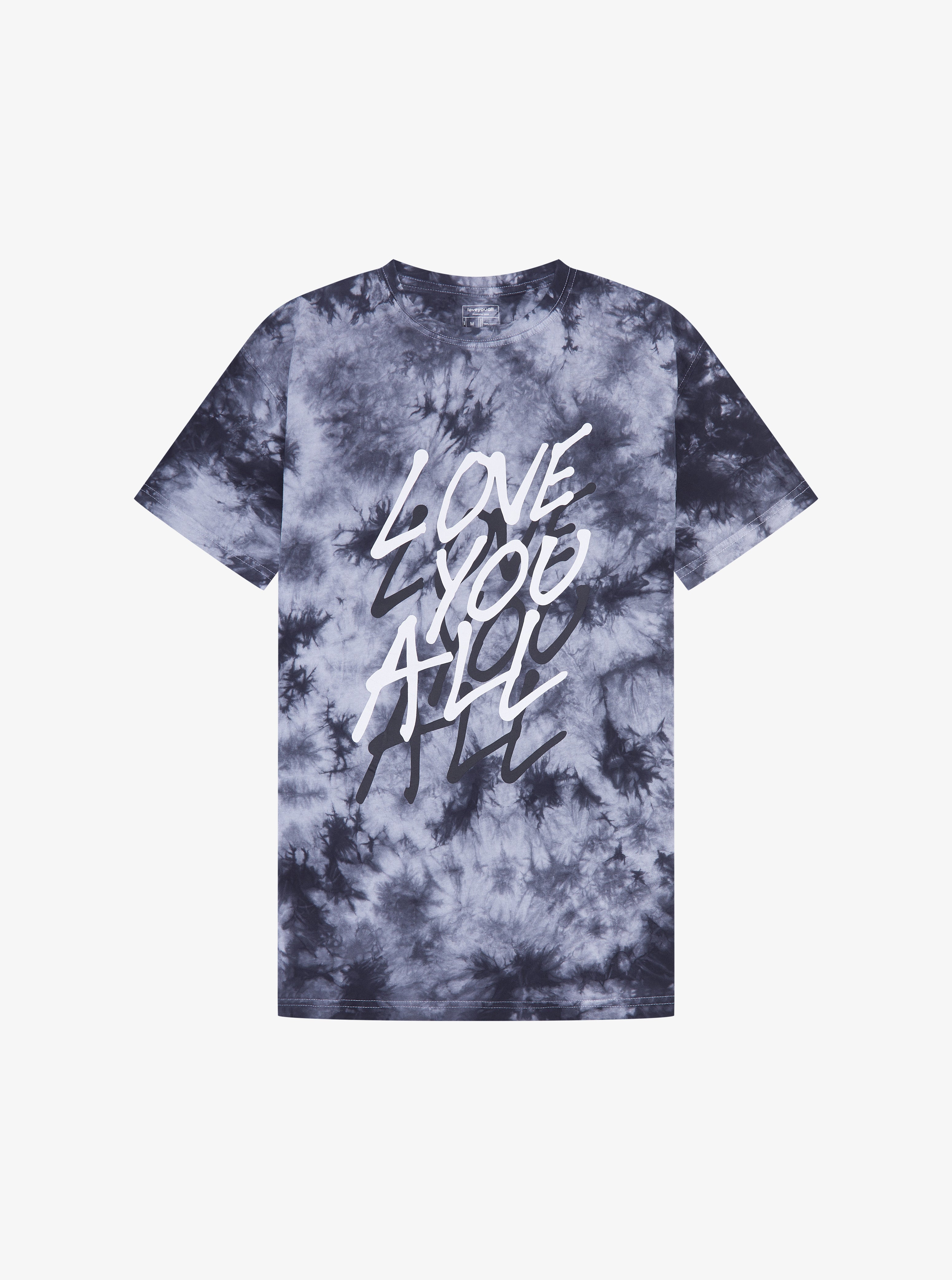 With a classic crew neck, short sleeves, and a unique tie dye finish, each t-shirt is one-of-a-kind. The look is completed with the LYA brand signature screen print, giving it an authentic graffiti-inspired touch.