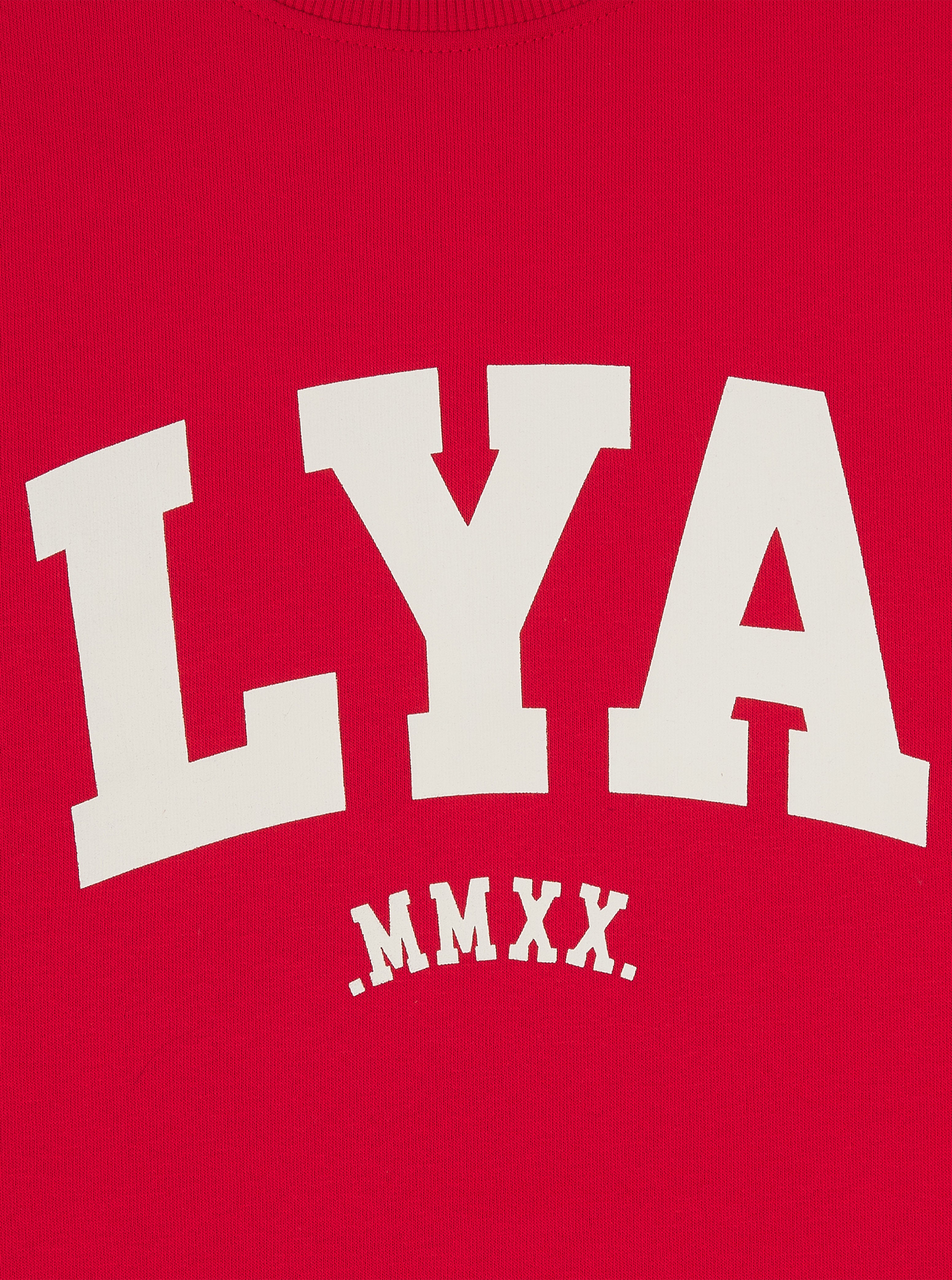 Featuring ribbed cuffs, hem, and neckline for structure, it’s finished with a screen-printed LYA logo and Roman numerals marking the brand’s year of establishment — a subtle nod to heritage and authenticity. The soft brushed interior ensures a cozy feel throughout the day, blending timeless design with everyday comfort.