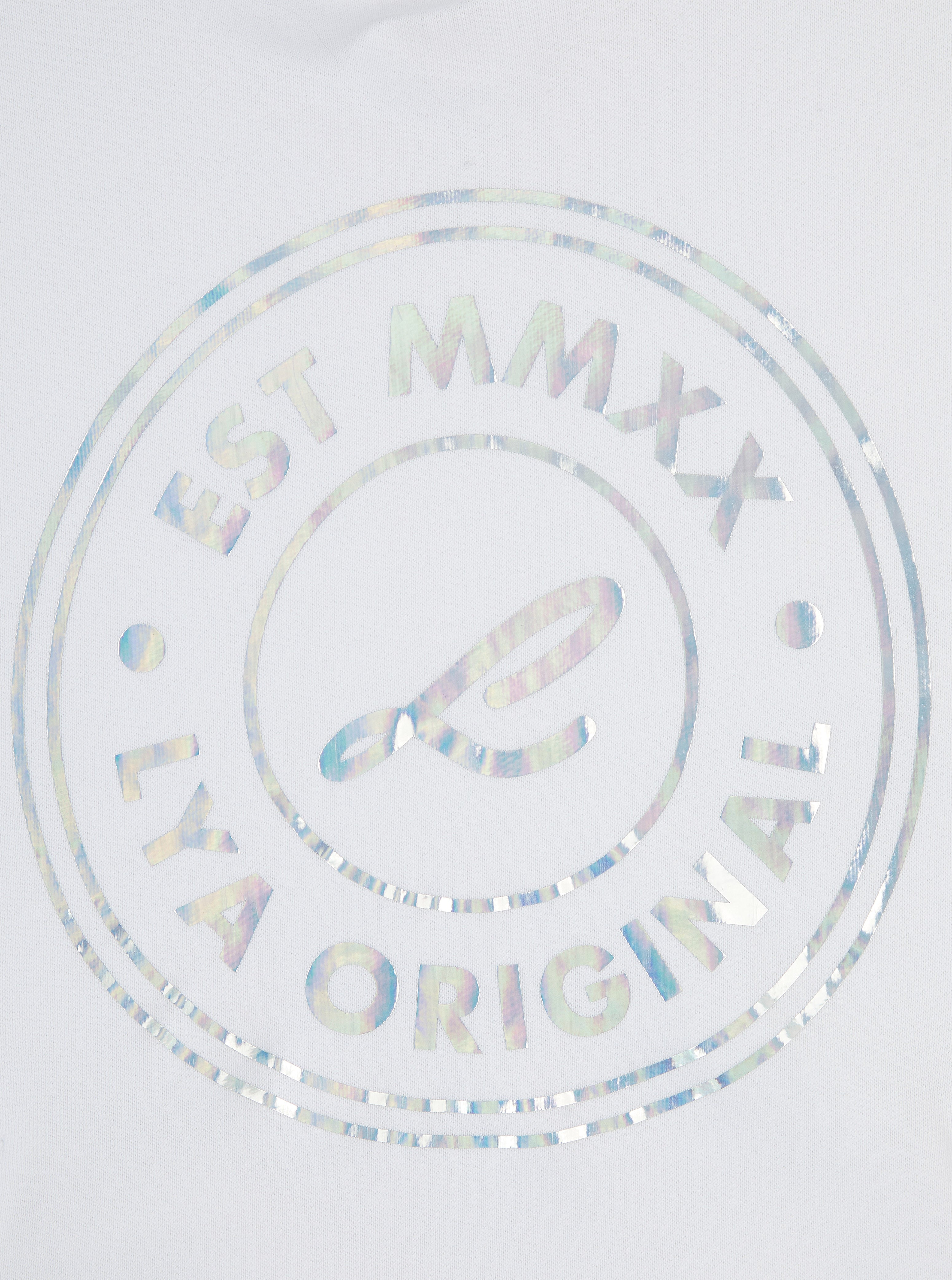 Add a bold touch to your casual wardrobe with the White Metallic Hoodie from LYA. Crafted from 100% organic cotton with a soft cotton jersey interior, this hoodie combines comfort, style, and effortless versatility.
