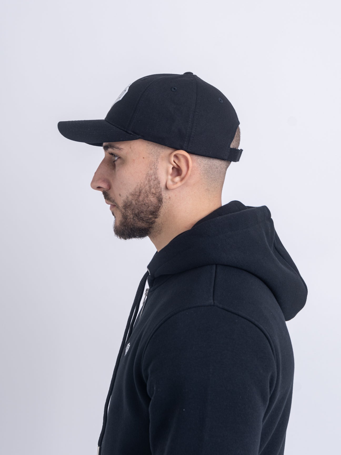 Make a statement with the White on Black Cap, featuring a sleek black cotton twill base with a crisp, white embroidered LOVE logo at the front. Its six-panel construction and curved brim ensure a comfortable, classic fit, while embroidered eyelets provide ventilation throughout the day.